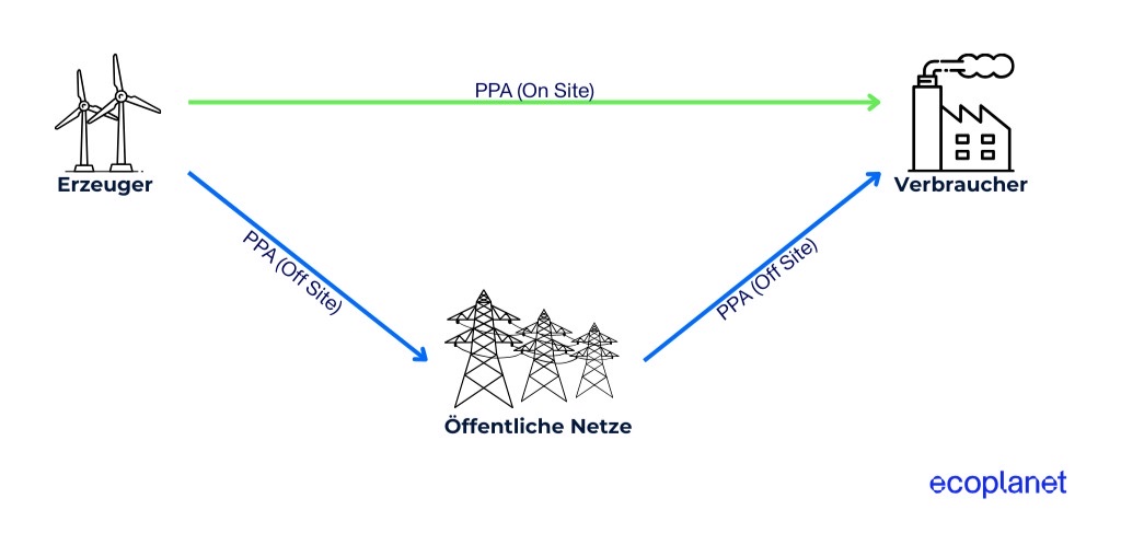 Physische PPAs: On site PPAs, Off site PPAs und Private Wire PPAs